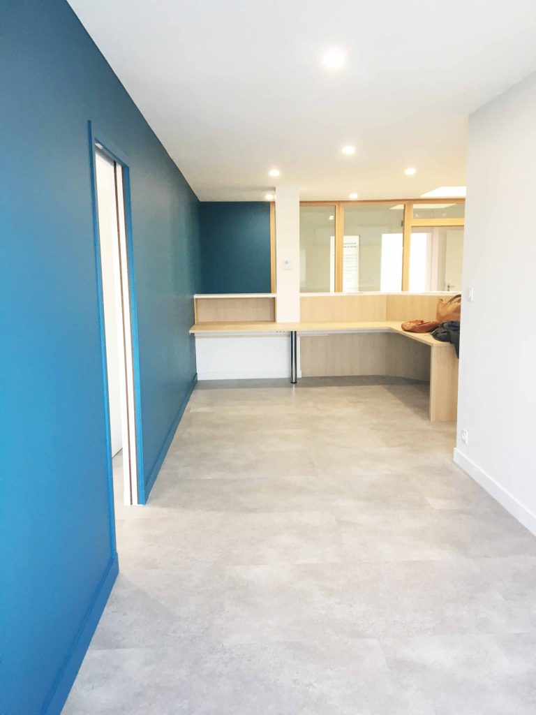 Ce cabinet médical a été entièrement réhabilité par nos soins en 2019. Il s’agit d’un cabinet à double activités, sur un seul plateau de 315 m2, situé à Vannes, dans la zone de la clinique Océane. Pour cet ensemble, au STYLE COLORÉ et contemporain, Notre rôle a été de restructurer l’organisation globale des zones aussi bien pour le côté Gastro que pour le côté ortho et de repenser  la décoration intérieur. Notre mission était complète, à savoir des dessins 2D/3D mis en couleurs à la réalisation du projet. Pour ce faire, nous avons préalablement dessiné les plans afin de se projeter dans les nouveaux volumes. Puis, une fois les plans validés, nous avons réalisé tous les devis nécessaires au chantier (appels d’offres). Et enfin, nous avons réalisé le suivi total du chantier jusque sa livraison (coordination du chantier)