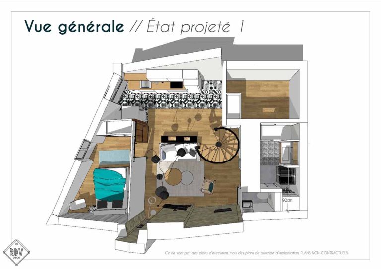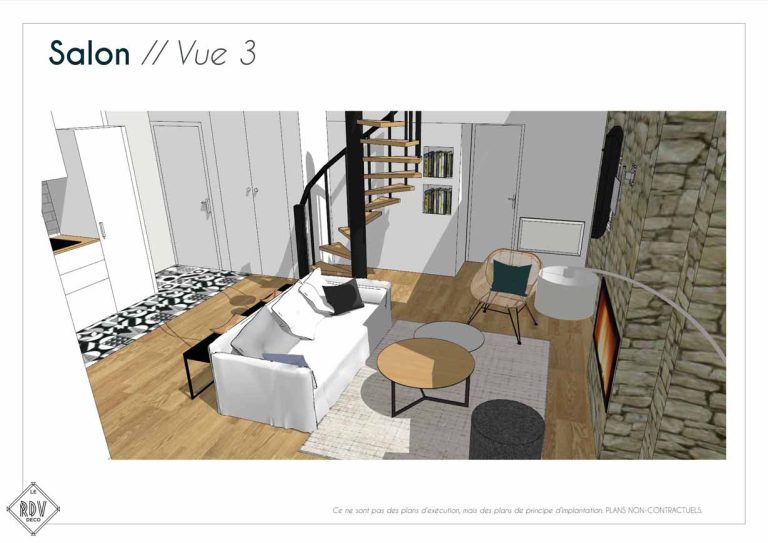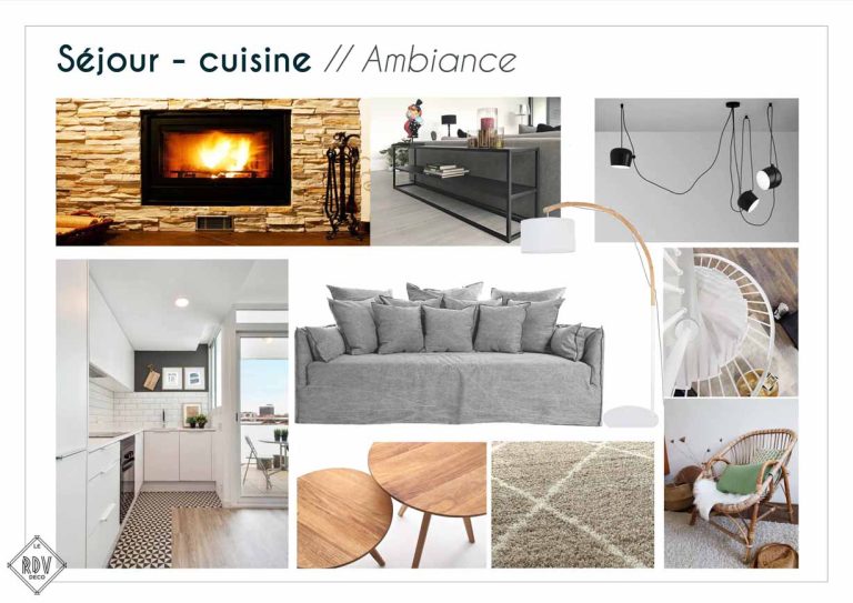 Pour ce charmant appartement vannetais de 40 m2 situé dans un immeuble ancien, nous avons été missionné afin de dessiner les volumes et penser les volumes et créer un concept déco. Nous avons revisité toutes les zones, leur organisation et distribution et avons travaillé avec des matériaux naturels tel que des mur en pierre, du parquet, du métal brut, une grande porte ancienne afin de créer une séparation entre le salon et la chambre, carreau de ciment…). Nous avons créé des planches d’ambiance afin de diriger nos clients dans les styles de meubles, accessoires et luminaires ; mais également dans les ambiances teintes et matériaux. Ci-dessous le book déco complet.