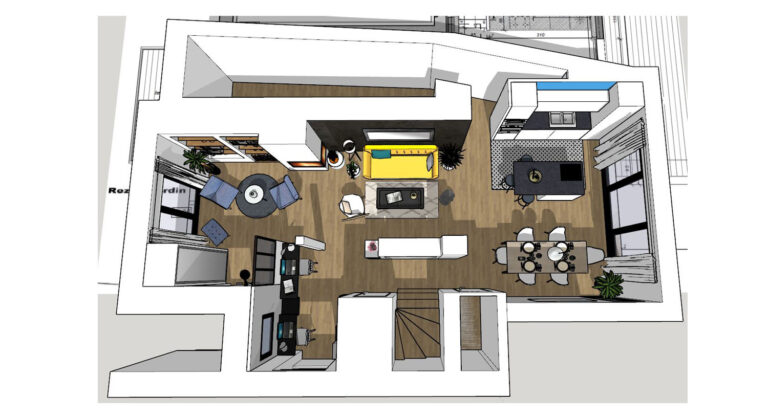 Nous implantons les différents espaces, choisissons les revêtements sol/mur, proposons des gammes de couleurs et ambiance matériaux.