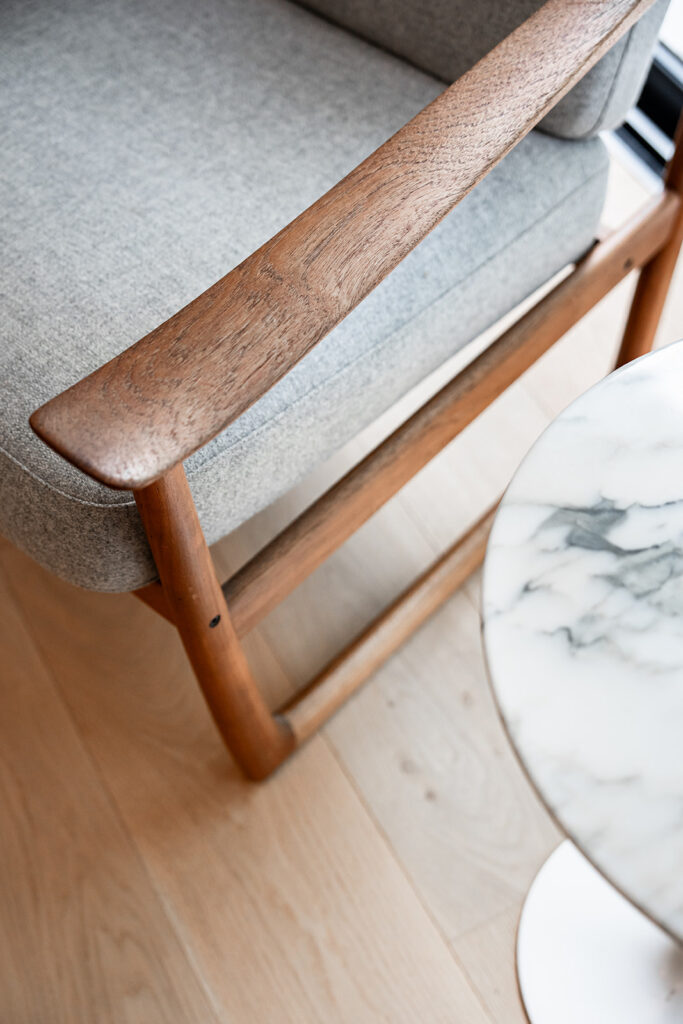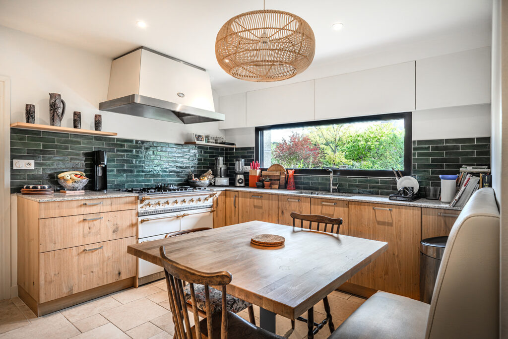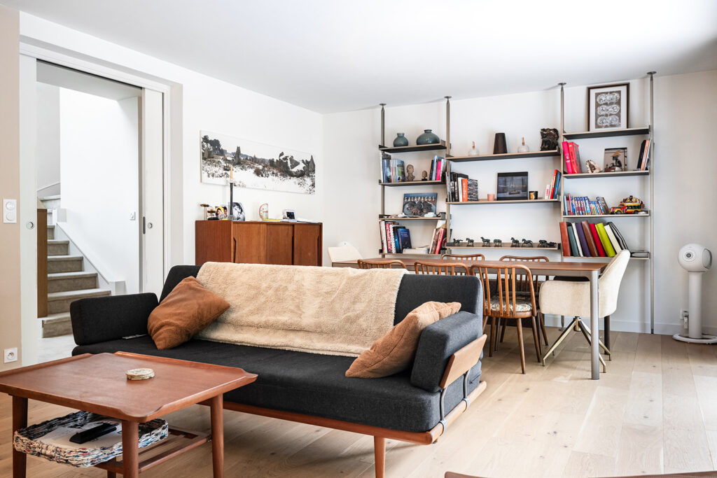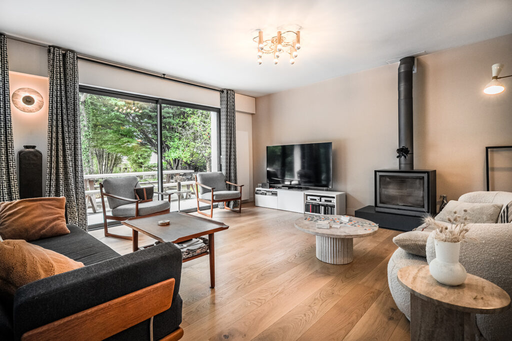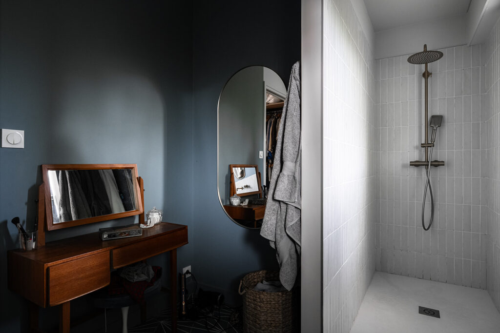 Nous avons récréé de nouveaux volumes fonctionnels et répondant au cahier des charges de cette famille avec 3 adolescents. Nous avons réalisés tous les plans techniques et avons fait la coordination de la rénovation totale et globale de cette maison. La décoration mêlant le côté authentique (sol en travertin, éléments en bois…) aux teintes et matériaux cosy et végétales (moquettes beiges, mur crèmes, papier peint panoramiques Isidore Leroy…) s’additionnent à des pièces de choix Vintage et raffinés.