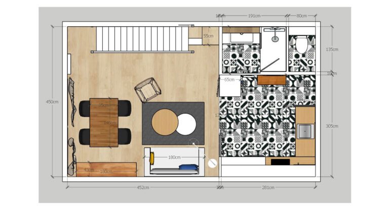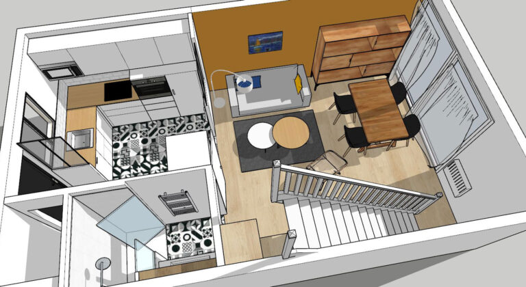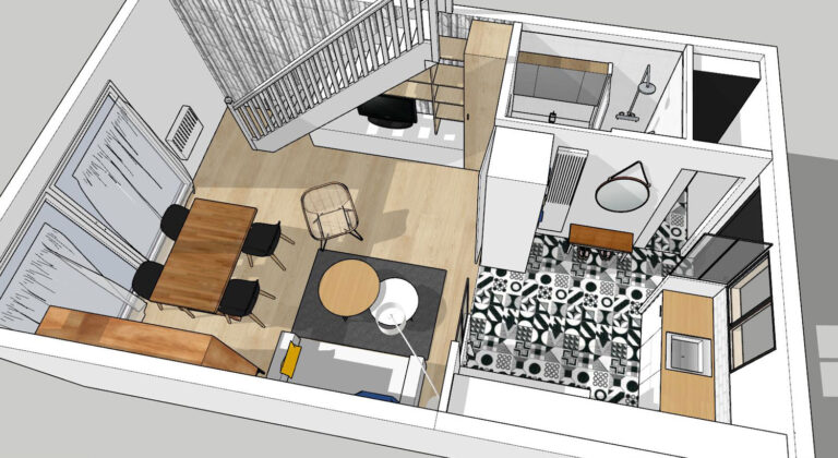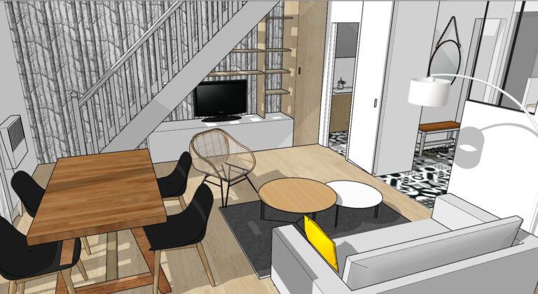 Les propriétaires qui viennent d’acheter cet appartement, souhaitent le RÉNOVER afin de pouvoir l’occuper en tant que maison de vacances. Nous proposons donc une mission clef en main, de la conception à la réalisation du chantier, notre mission est complète. Dans un 1er temps nous réalisons les dessins en 2D & en 3D du futur appartement grâce à une redistribution totale des volumes. Puis, nous faisons réaliser tous les devis des artisans nécessaires au chantier (électricien, plombier, cuisiniste, plaquiste, peintre, carreleur, menuisier…) et choisissons les matériaux de finition adéquates. Enfin, nous pouvons mettre en place le planning du chantier dont nous coordonnons la réalisation en totalité. Pour le suivi du chantier, nous réalisons des visites très régulière durant tout le temps des travaux afin de s’assurer de la bonne réalisation des préconisations et répondre aux artisans (+envoie de photos en cour de réalisation).